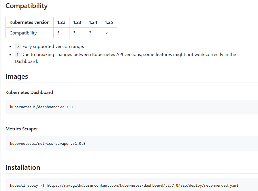 1 | kubectl apply -f https://raw.githubusercontent.com/kubernetes/dashboard/v2.7.0/aio/deploy/recommended.yaml |