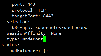 1 | kubectl edit service kubernetes-dashboard -n=kubernetes-dashboard |