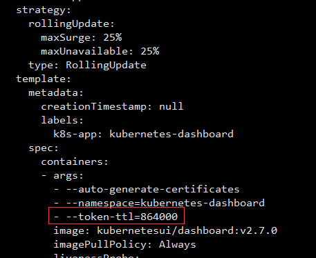 1 | kubectl edit deployment kubernetes-dashboard -n=kubernetes-dashboard |